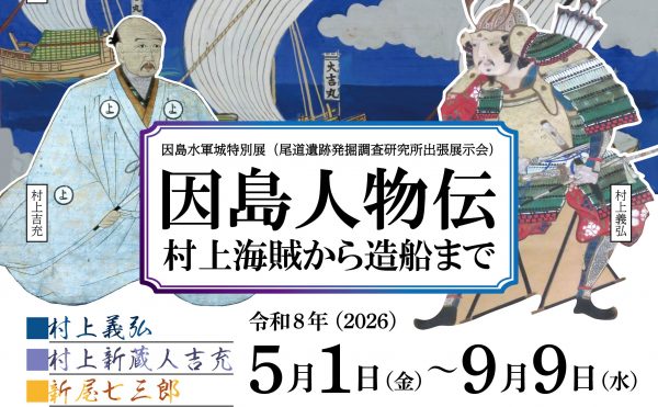 NEW 2026年4月13日イベント因島観光協会 因島水軍城特別展「因島人物伝」村上海賊から造船まで因島水軍城にて特別展「因島人物伝」が開催されます! 特別展期間中は特別展料金になります。 期 間 2026年5月1日(金)~2026年9月9日(水) 料 金 15歳以上:500円(30名以上400円) 6歳以上~15歳未 […]