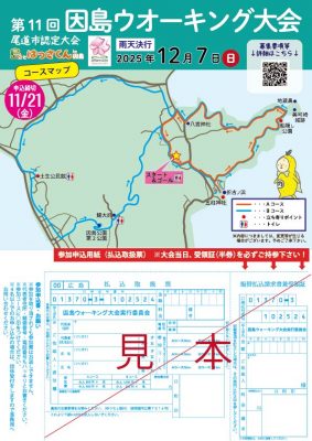 その他 | ・完歩証はゴールにてお渡し致します。 ・ゼッケン提示で本因坊秀作囲碁記念館・因島水軍城を当日のみ無料で見学できます! ・個人情報は参加者の連絡・照会・今後の活動案内、傷害保険請求手続き等の必要な範囲内でのみ使用致します。 ・また、大会の模様を撮影した写真や映像等を、放送・新聞・ホームページ(SNS)・ポスター等で使用することをご了承下さい。 ・コースを外れて歩かれた場合は、自己責任において歩いて下さい。万一、事故が発生した場合の責任(保険等)は負いかねますのでご了承下さい。 ・雨もまた自然です。荒天(大雨・洪水・暴風警報発令時)以外は歩きます。 ・中止の場合は、因島観光協会ホームページをご覧ください。こちらからの連絡は致しません。 |