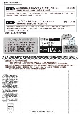 参加費 | 【Aコース】 中学生以上 800円 小学生以下 400円 【Bコース】 中学生以上 1,000円 小学生以下 500円 ※参加費には、ゼッケン・コースマップ・完歩証・傷害保険料等が含まれます。 ※参加を取り消された場合や大会が悪天候で中止になった場合、参加費の返金はありません。 |