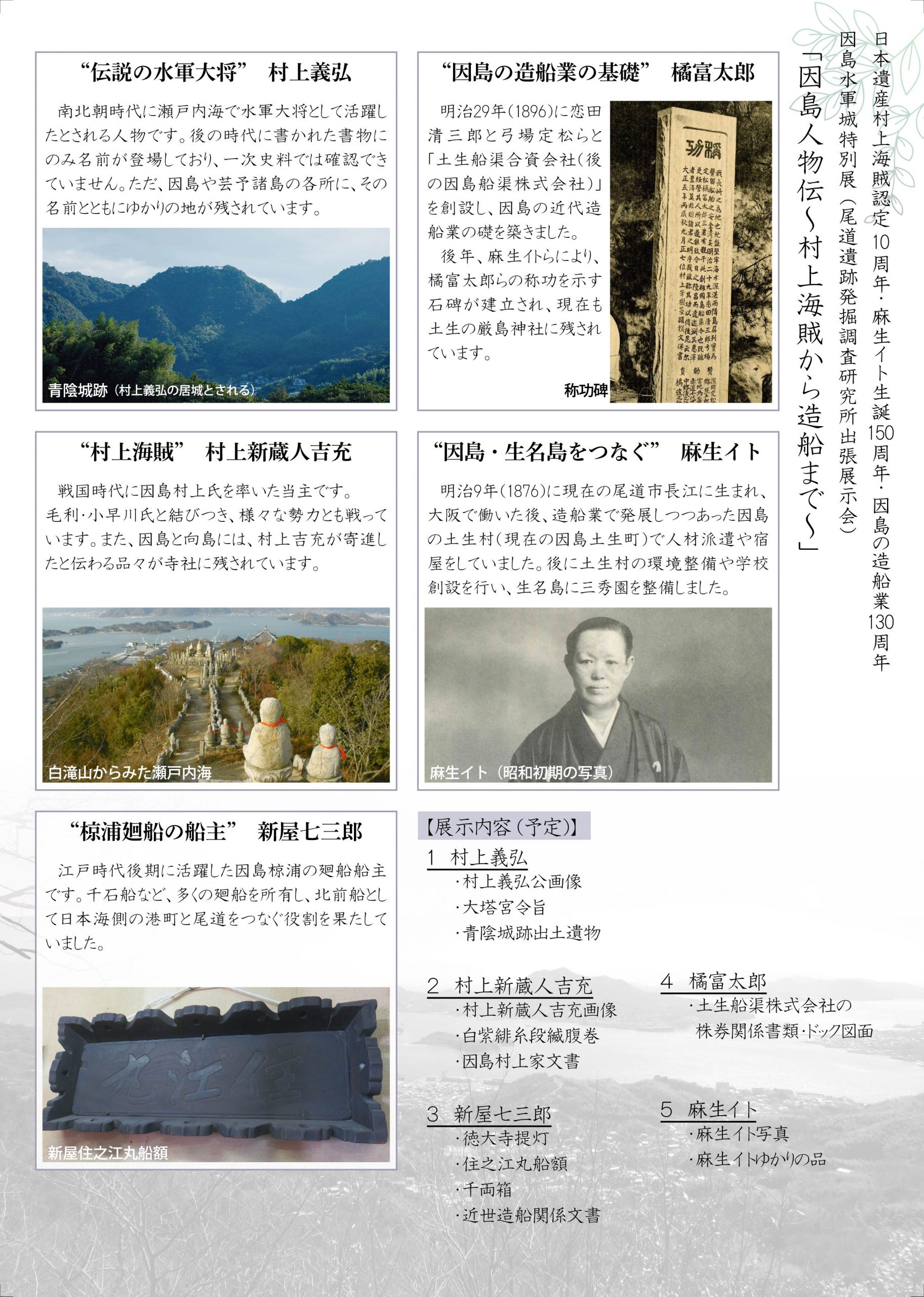 因島水軍城特別展「因島人物伝」村上海賊から造船まで